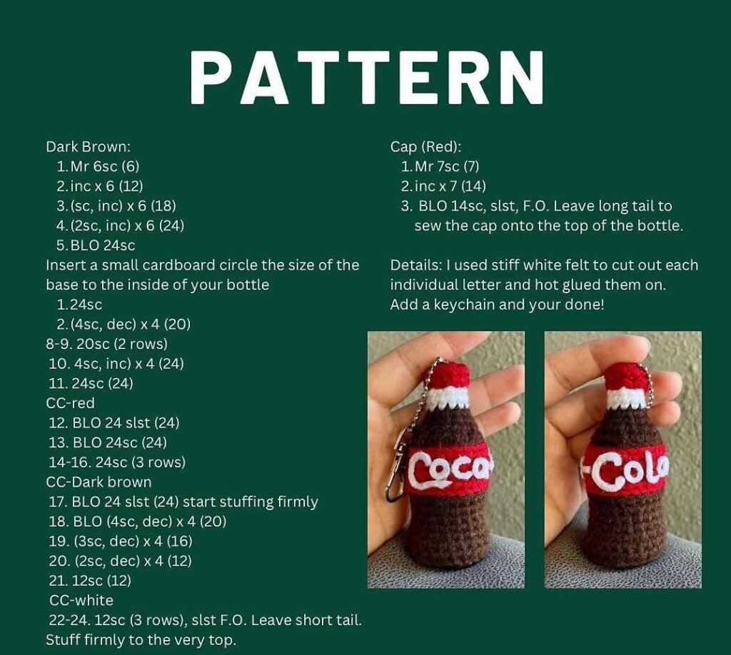 In addition to being visually appealing, a Crochet Coke Bottle Keychain is a beginner-friendly crochet project that helps improve technique and creativity. It can be made using basic stitches and simple shaping methods, making it accessible for those just starting out in crochet. At the same time, experienced crocheters can experiment with advanced techniques to add intricate details, texture, and realistic finishing touches.